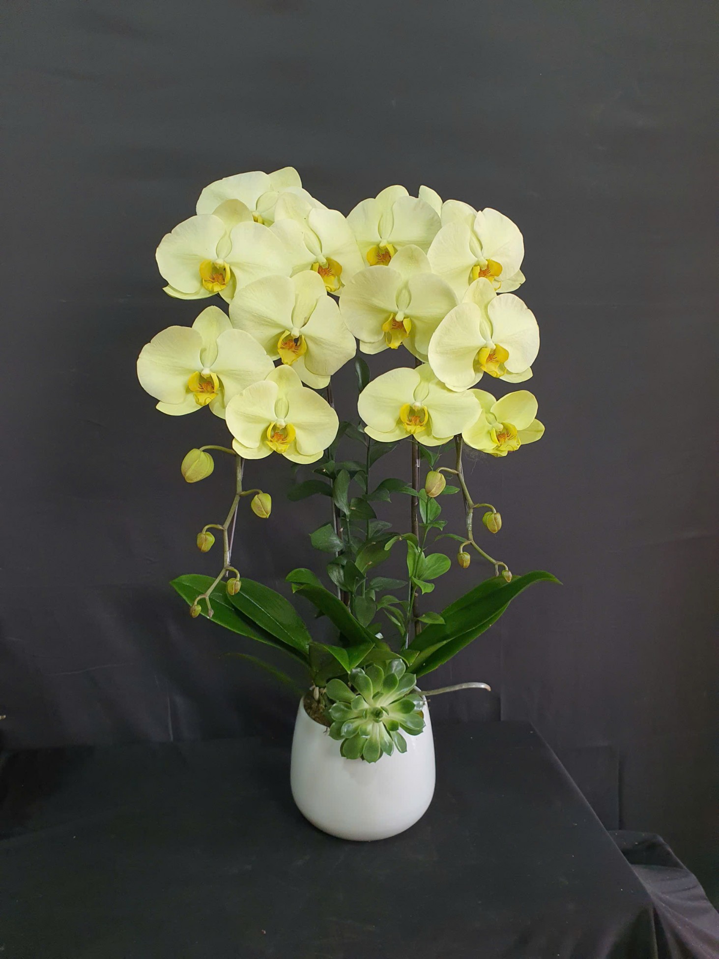 Chậu lan hồ điệp xanh táo tươi mới