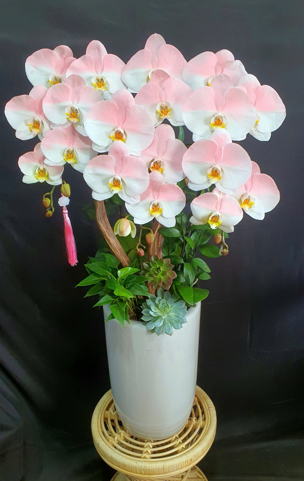 Mỗi nghệ nhân cắm hoa sẽ tạo ra các mẫu hoa khác nhau, không hoàn toàn giống nhau 100% và có độ tùy biến đôi chút, hoalantacpham.com cam kết đảm bảo tầm 90%-95% như mẫu cho quý khách hàng (100% sản phẩm hoa lan từ người dân làng hoa Lâm Đồng)